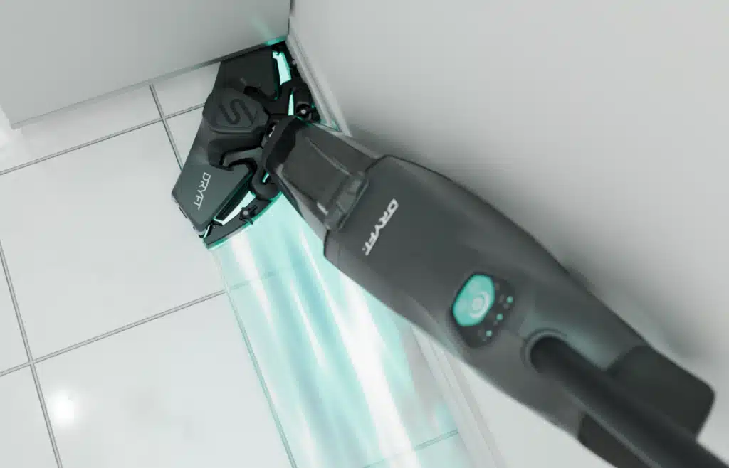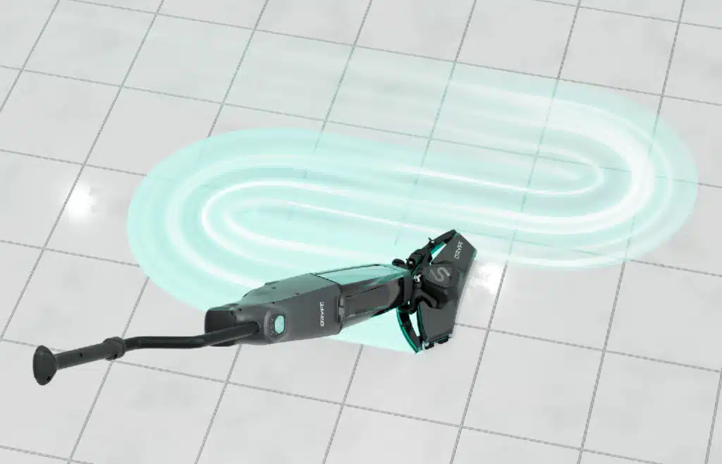 The Dryft is a portable, battery-powered floor cleaning scrubber designed for quick and efficient cleaning in small commercial spaces.